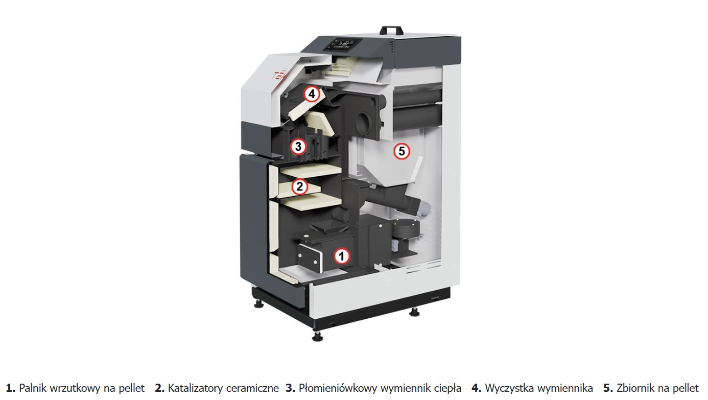 Tekla KOMFORT kateldel on automaatne põleti ja soojusvaheti puhastamine ning VÄLINE tuhakast.